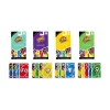 Añade cualquiera de las cartas especiales de estos sets a una baraja clásica de UNO y deja que la diversión comience. Hay un paquete donde todas las cartas invierten el sentido del juego, otro donde los jugadores van colocando las cartas comodín una sobre otra, uno más donde intercambian cartas y otro en el que los jugadores descartan varias cartas en un turno. Estos sets de cartas son el regalo ideal para los niños de 7 años en adelante y los fans de UNO. Cada set se vende por separado y están sujetos a disponibilidad. Los colores y las decoraciones pueden variar.